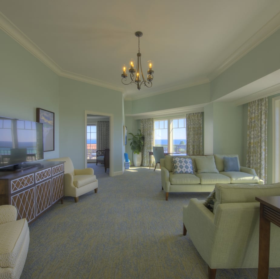 Watch the sunrise from your private balcony or lounge in your plush king or queen beds and enjoy views of the emerald waters of the Gulf of Mexico. Premium Gulf View Suites are located on the 2nd and 3rd floor and feature 674 square feet of living space. Floor-to-ceiling windows provide luminous natural light while the timeless decor provides a welcoming space to relax and recharge.